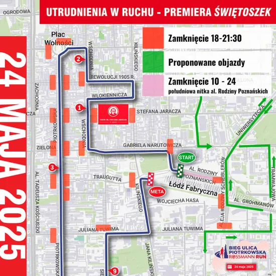 Bieg ulicą Piotrkowską Rossmann Run - 24 maja g. 19.00 UTRUDNIENIA W RUCHU!